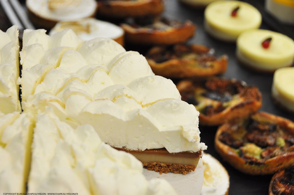 Ensuite pour continuer dans le salé, il ne faut pas oublier le fromage, joliment arrangé sur une planche en bois avec quelques grains de raisin et une belle confiture d’oignon.